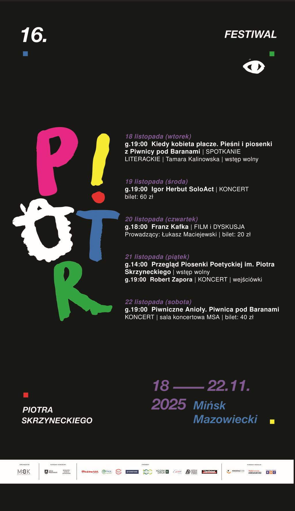 Festiwal poświęcony jest Piotrowi Skrzyneckiemu, który dzieciństwo spędził w Mińsku Mazowieckim, a losy swoje związał z krakowską Piwnicą pod Baranami.Piotr był współtwórcą kultowego kabaretu, jego kierownikiem artystycznym, dobrym duchem aż do ostatnich swoich dni. Był osobą nieprzeciętną, która dzięki swojej charyzmie skupiała wokół nieprzeciętnych twórców: poetów, kompozytorów, aktorów, pieśniarzy i malarzy… To im oddajemy hołd podczas mińskiego festiwalu.